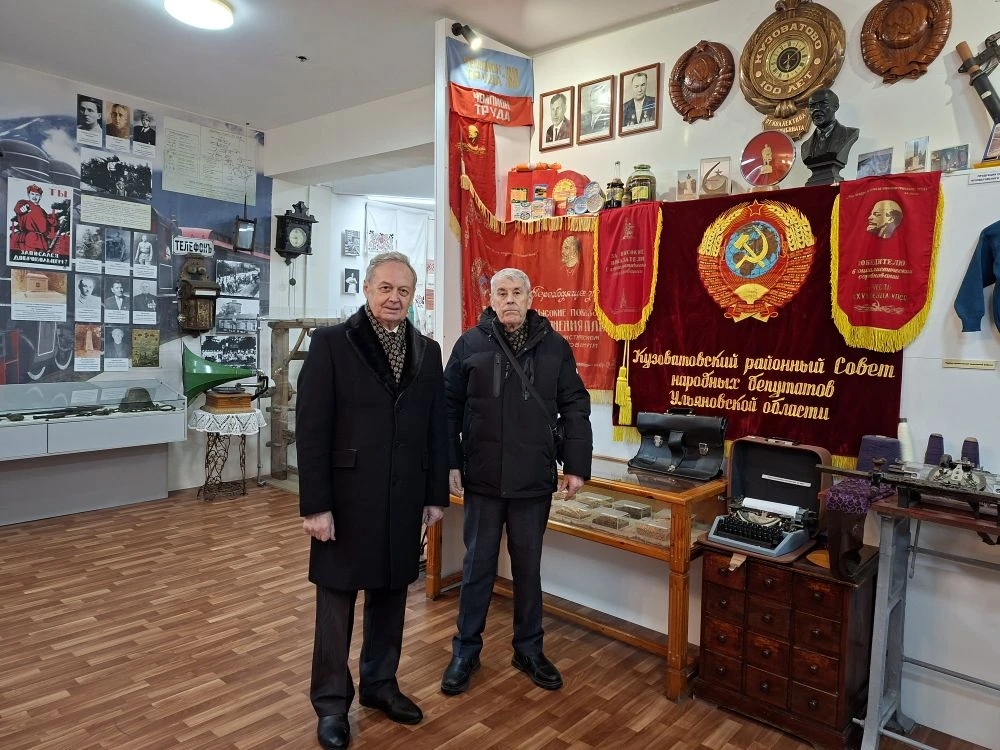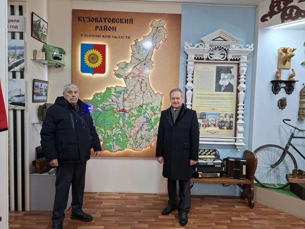 Следующим пунктом было Кузоватово. Вначале Валерий Михайлович встретился с главой администрации МО "Кузоватовский район" Александром Вильчиком. Александр Наумович охарактеризовал социально-экономическое положение района, представил некоторые проекты. Затем разговор коснулся ветеранской организации, ее роли в жизни кузоватовцев, участия в акциях и мероприятиях. Руководитель ветеранского сообщества Николай Сафелкин дополнил информацию, затем показал Рябиничеву "штаб" организации. Были сделаны памятные фото.