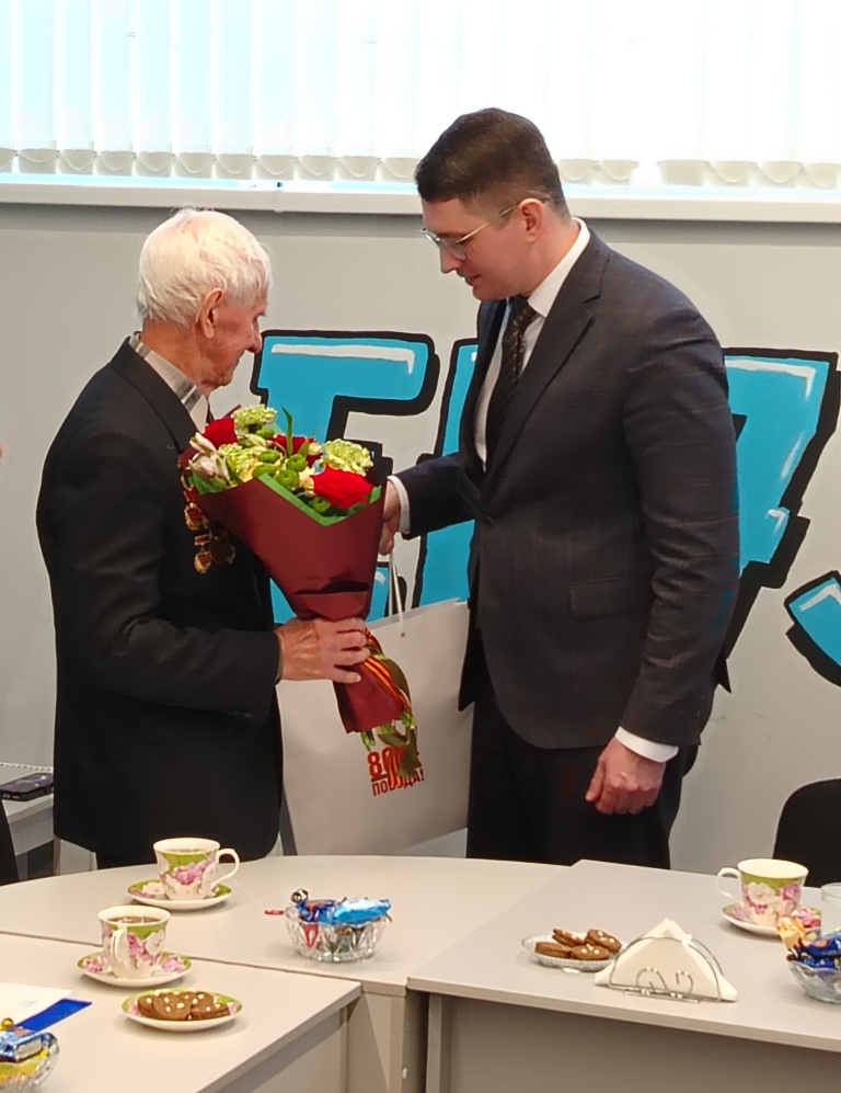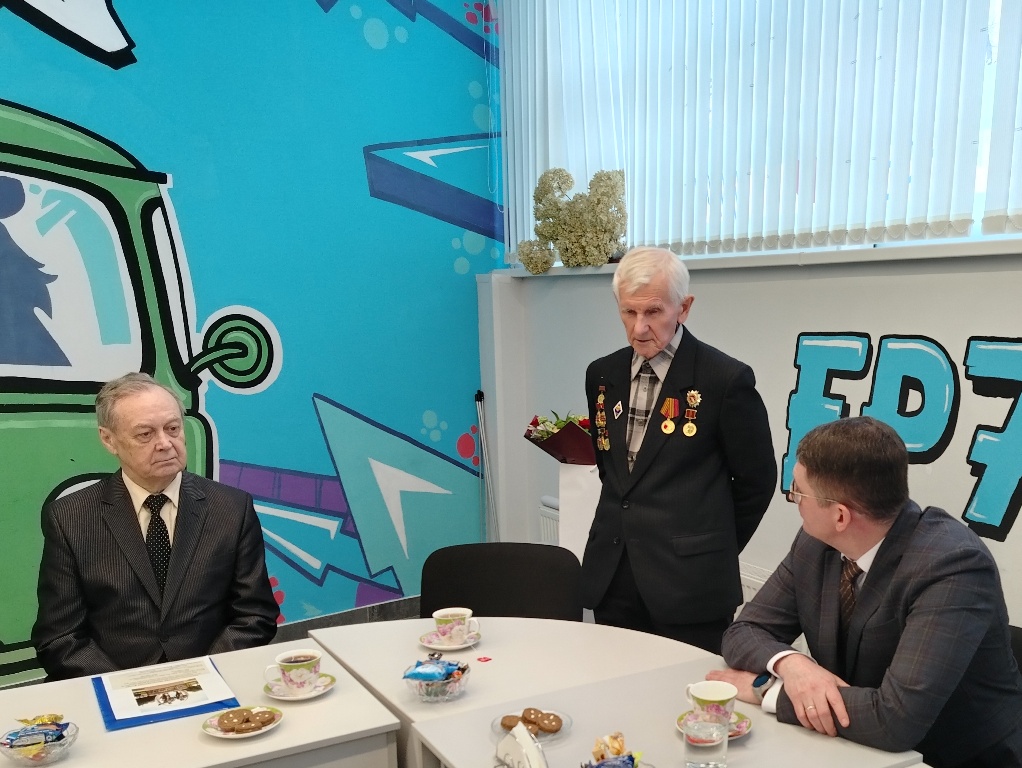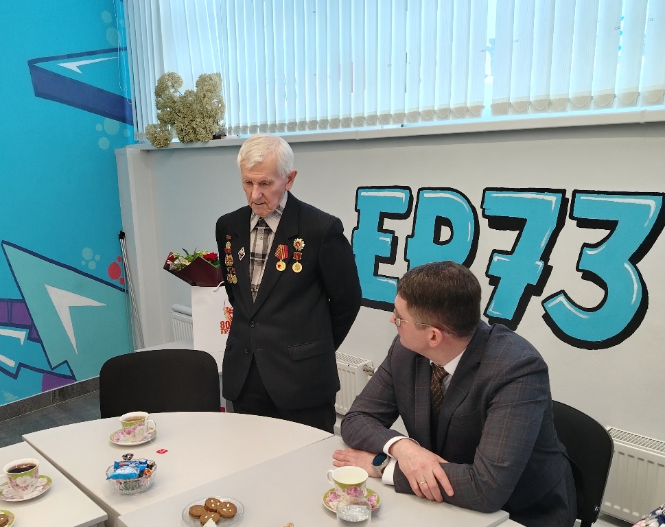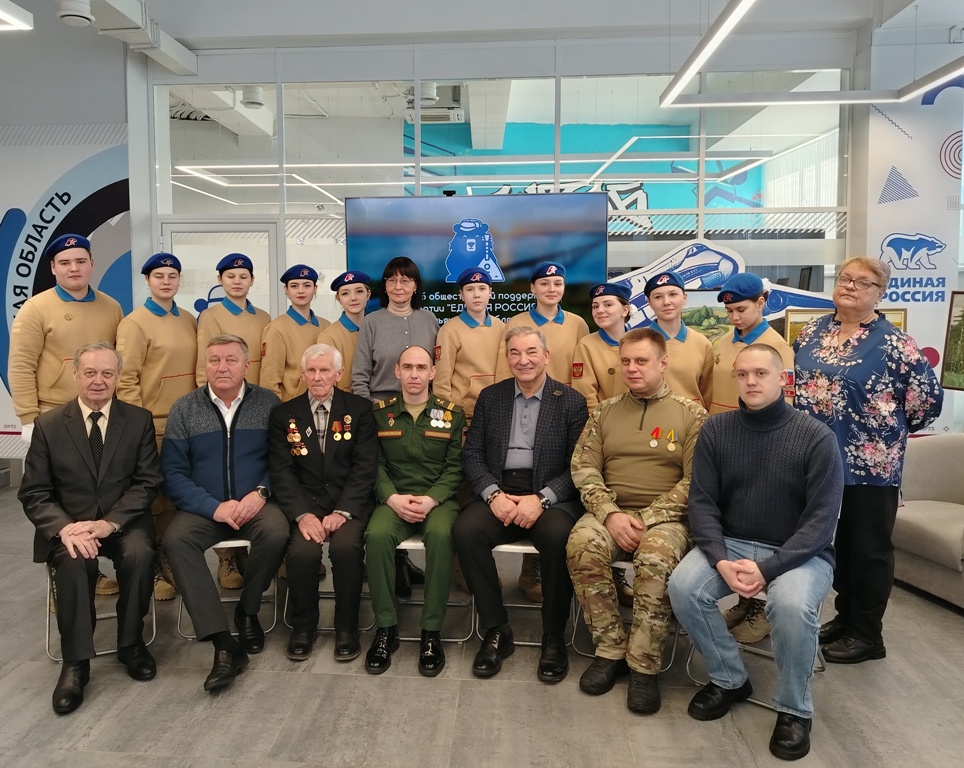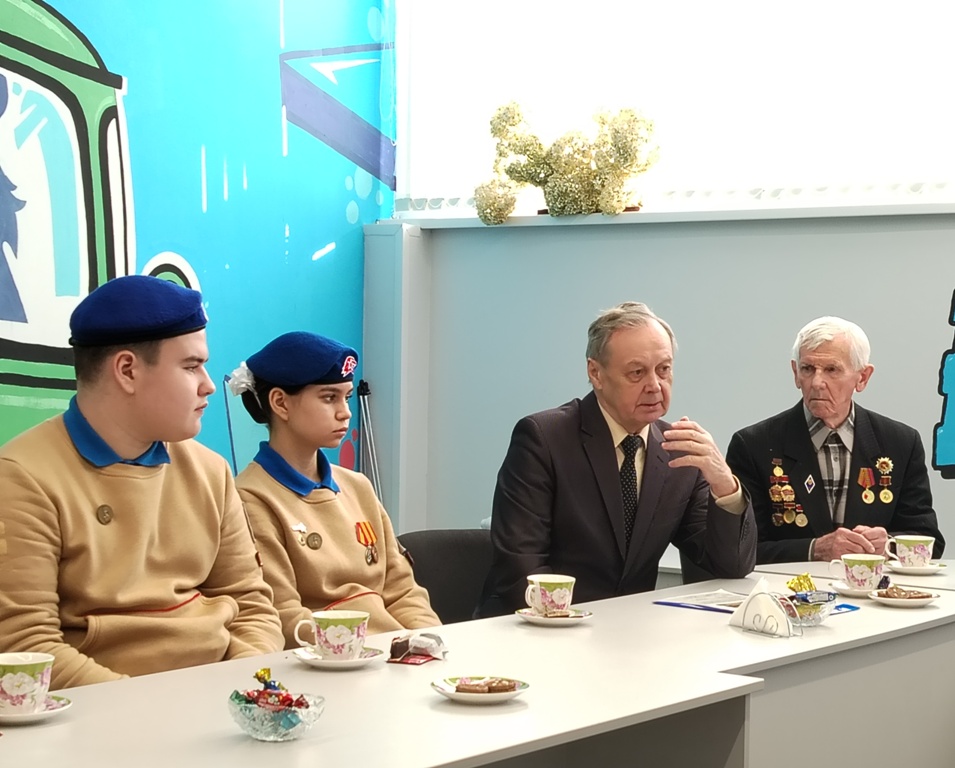 На встречу с юнармейцами школы №52 имени Героя России Александра Шишкова пришли: житель осажденного Сталинграда Виктор Сергеевич Тришин, участники специальной военной операции Рамис Рифкатович Ахметов, Руслан Фаязович Заббаров и Александр Алексеевич Ильичев, председатель Ульяновского областного совета ветеранов Валерий Михайлович Рябиничев. А вскоре с митинга, прошедшего на площади 30-летия Победы, подтянулись Министр социального развития Ульяновской области Дмитрий Владимирович Батраков, депутат Законодательного Собрания Марина Павловна Беспалова, первый заместитель Председателя Законодательного Собрания и секретарь регионального политсовета "Единой России" Владимир Николаевич Камеко, депутат Госдумы от Ульяновской области Владислав Александрович Третьяк. Каждый из них обратился к ребятам. Виктор Сергеевич поделился воспоминаниями о тех страшных днях, когда он, четырехлетний ребенок, живший в Сталинграде, видел ужасы бомбежек и смерть на каждом шагу. Валерий Рябиничев рассказал о службе в ракетных войсках стратегического назначения и о том, что строители нового города были в массе своей молодыми ребятами, и их детище - авиакомплекс со всей инфраструктурой - тоже подвиг, только в мирной жизни. И Указ Президента России В.В.Путина о праздновании 50-летия авиакомплекса тому подтверждение. И в честь парней и девчат, ехавших на ударную комсомольскую стройку в Ульяновск, будет открыт памятник. Также своими представлениями о долге и важности защиты интересов страны поделились участники СВО Александр Ильичев, Руслан Заббаров и Рамис Ахметов. Все трое имеют ранения, все трое награждены за боевые заслуги. Владимир Камеко обратился к юнармейцам как завтрашней смене, которая будет отвечать за страну. Что касается Владислава Третьяка, его спортивные заслуги и достижения наверняка кажутся невероятными для нынешней молодежи - трехкратный олимпийский чемпион, десятикратный чемпион мира, участник знаменитой "канадской серии". Имеет ряд высших государственных наград как СССР и России, так и ряда зарубежных стран. Признан, по версии Международной Федерации хоккея, лучшим хоккеистом XX века. Ходит шутка, что нет такого мундира, на который бы уместились все награды Третьяка. То, что он депутат Госдумы от Ульяновской области, делает честь нашему региону. Владислав Александрович оказал и продолжает оказывать помощь в развитии детского спорта, строительстве хоккейных коробок, приобретении спортивной формы. Он также обратился к ребятам, пришедшим на встречу, призвал их не только хорошо учиться и понимать наставников, но и быть сильными, заниматься спортом.
