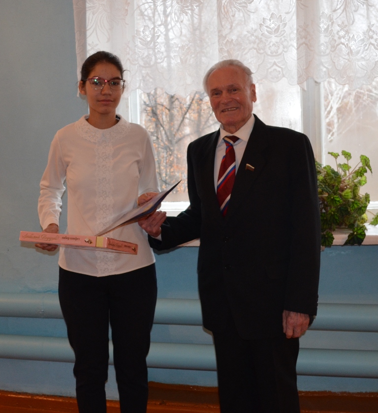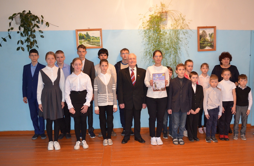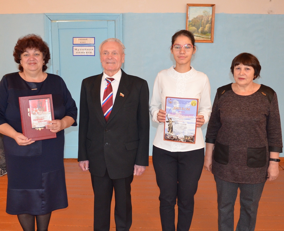 По этому случаю директор школы Вера Козырева объявила торжественную линейку. Все 17 учащихся встретили сообщение аплодисментами. Александра Исаева в числе трех лауреатов - представителей Ульяновской области получила из рук Сергея Николаевича диплом и памятный подарок. Всего в конкурсе участвовали представители 47 регионов России, из них 203 работы были объявлены лучшими. Конкурс проводился Всероссийской организацией ветеранов войны и труда, на первом, региональном этапе большая помощь в его проведении была оказана Министерством образования и воспитания Ульяновской области. Непосредственно курировала работу Александры учитель русского языка и литературы названной школы Ольга Киреева. По окончании торжества был сделан памятный снимок со всеми учащимися школы.