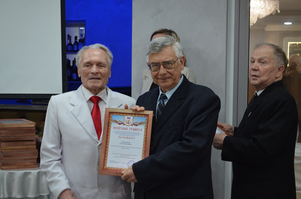 Торжество продолжилось в гостинице "Октябрьская", куда прибыли практически все члены областного Совета ветеранов войны и труда, заместители председателей городских и районных Советов ветеранов, члены информационно-пропагандистской группы областного Совета, члены ревизионной комиссии областного Совета, а также VIP-гости. Ведущий Владислав Витковский зачитал приветствие Центрального Совета Всероссийской организации ветеранов, воспроизвел предысторию и назвал тех, кто стоял у истоков ветеранского движения в Ульяновской области, кто возглавлял организацию в разные годы - Владимир Томуль, Георгий Курнаков, Александр Марьев. Минутой молчания почтили память тех, кто ценой своей жизни отстаивал интересы Отечества. Участников приветствовали заместитель Губернатора Александр Коробко, министр семейной, демографической политики и социального благополучия Ульяновской области Анна Тверскова, заместитель Главы города Ульяновска Ирина Митрофанова. Были вручены памятные подарки и сказаны теплые слова в адрес тех, кто, вложив немало труда в построение крепкого базиса советской экономической системы, ныне активно отстаивает интересы старших поколений и проводит работу по патриотическому воспитанию молодежи. Сергею Ермакову была вручена Почетная грамота Комитета по труду и социальной политике Государственной Думы Федерального Собрания Российской Федерации, Владимиру Аладину, Алексею Афанасову, Владимиру Плехову, Владимиру Сваеву, Геннадию Слюсаренко, Галине Кирилиной и Евгению Демичу - Почетный знак Всероссийской общественной организации ветеранов войны, труда, Вооруженных Сил и правоохранительных органов, Александру Груздову, Игорю Кремлякову и Анатолию Узикову - Почетная грамота Всероссийской общественной организации ветеранов войны, труда, Вооруженных Сил и правоохранительных органов. Значительная часть активистов награждена Почетной грамотой Ульяновского областного Совета ветеранов войны и труда. На торжественном вечере звучали стихи и здравицы, продолжились разговоры о делах текущих и предстоящих.