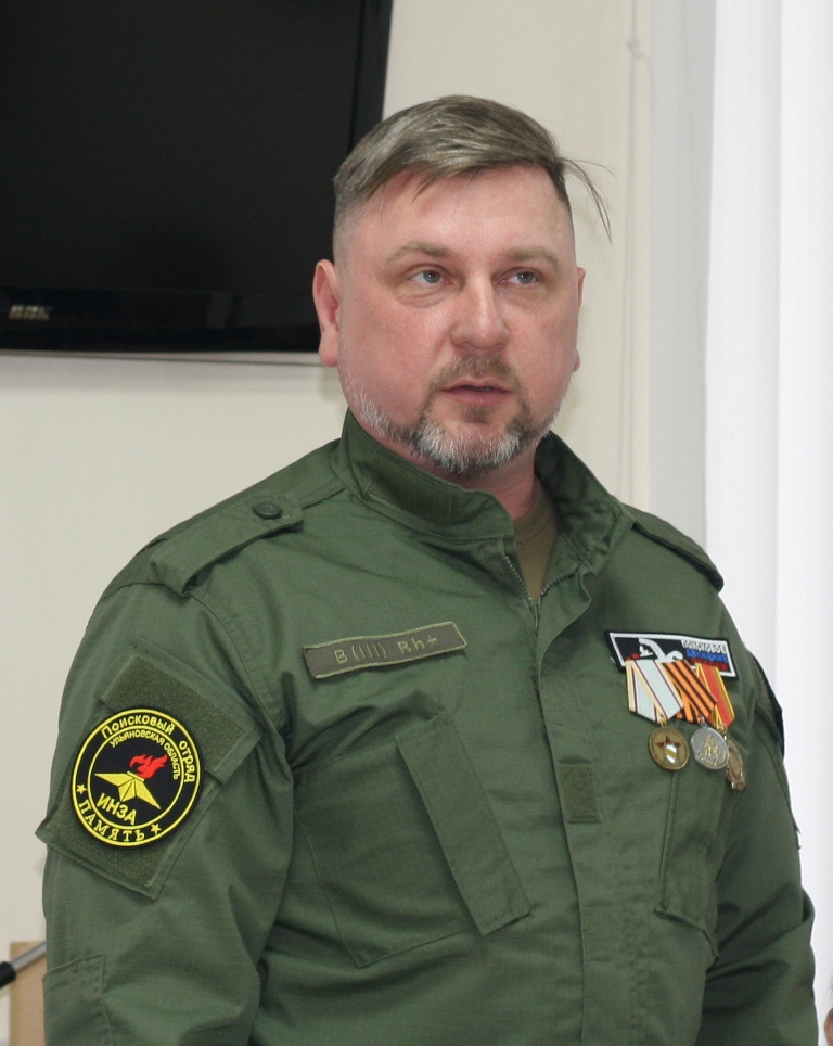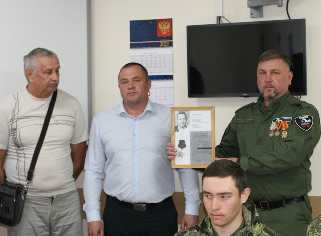 Второе мероприятие, где побывали гости - встреча главы администрации Александра Кузнецова с представителями общественных организаций Инзенского района. Слово предоставили всем. Сам Александр Юрьевич, учитывая состав присутствующих, кратко высказался о специфике и особенностях спецоперации, где ему довелось повоевать. "Изюминкой" стало вручение ордена Славы III степени Владимиру Флёнову, сыну уроженца села Большая Борисовка Флёнова Ивана Анатольевича, который в годы Великой Отечественной воевал в составе 54-го мотострелкового полка. Орден считался утерянным, но в 2025 году члены Псковской общественной военно-патриотической организации "След Пантеры" смогли его найти. Об этом рассказал руководитель Инзенского отделения поискового отряда "Память" Виталий Ершов.