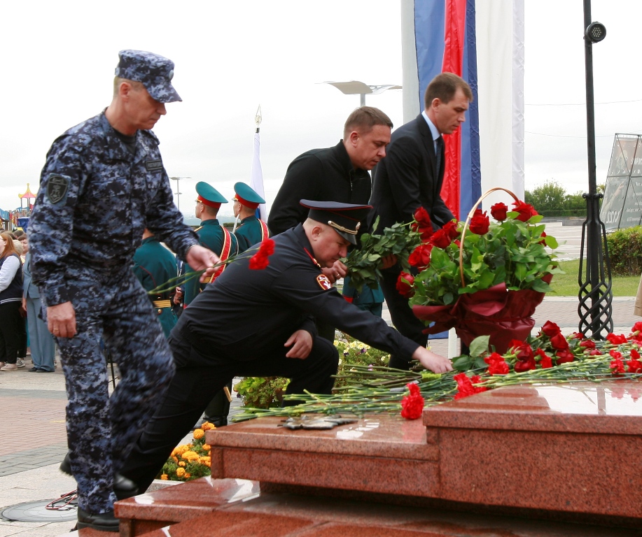 Захват с последующим трехдневным кошмаром для детей и сотрудников школы №1 случился 1 сентября 2004 года. Трудно представить весь ужас случившегося: дети, некоторые с родителями, пришли в школу после летних каникул, парадно одетые, с цветами, радостные... немногие из них представляли себе, что такое заложники. Наверное, они еще надеялись, что все обойдется, бородатые дяди в черном всех отпустят и они вернутся домой. Не обошлось... 334 погибших в числе которых 186 детей, около 800 раненых... Оставшиеся в живых никогда не забудут этот день - 1 сентября. Беслан стал символом, черным символом. Но он же высветил те человеческие качества, без которых мир давно бы рухнул. Это чувство долга, готовность к самопожертвованию, героизм. Самая крупная по числу потерь операция спецназа. Среди них - ульяновец, подполковник группы "Вымпел" Дмитрий Разумовский. Он тоже окончил школу №1, только в Ульяновске. Теперь недалеко от его родной школы стоит памятник. Ему. И у него каждый год собираются сотни людей, чтобы почтить память тех, кто погиб от рук радикалов-экстремистов, сознательно ставших убийцами. В церемонии возложения цветов приняли участие первые лица региона, члены правительства и депутаты, военные, общественники, правоохранители, ветераны и сотрудники спецслужб. Короткие, сдержанные выступления. Их смысл - противостоять терроризму - значит быть дружными и сплоченными, бдительными и неравнодушными.